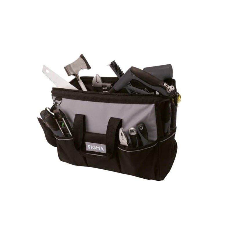 Τσάντα εργαλείων κατασκευασμένη από ανθεκτικό υλικό, κατάλληλη και για επαγγελματική χρήση. Διαθέτει μεγάλη χωρητικότητα, ώστε να μπορείτε να μεταφέρετε σε αυτή πολλά εργαλεία. Περιλαμβάνει αρκετές εσωτερικές τσέπες για καλύτερη οργάνωση και τακτοποίηση των εργαλείων σας.